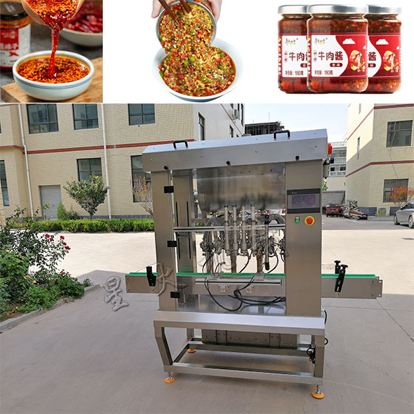 自動化瓶裝辣椒醬包裝旋蓋貼標機流水線以及樣品圖