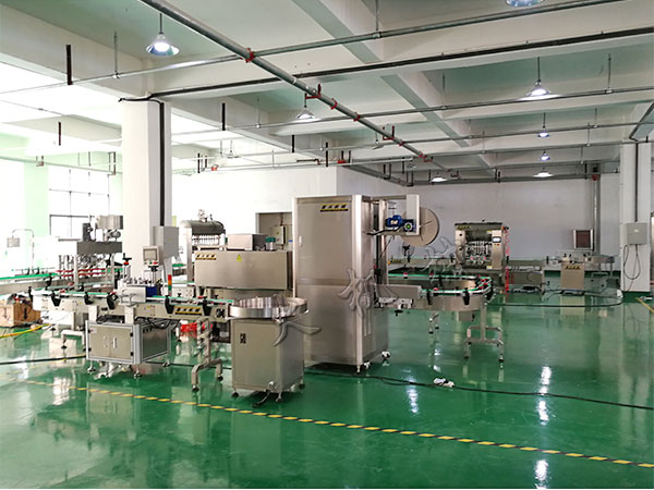 自動化瓶裝辣椒醬包裝旋蓋貼標機流水線車間實拍圖