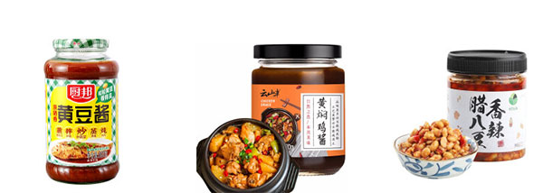 全自動豆瓣醬包裝機械生產線設備樣品圖