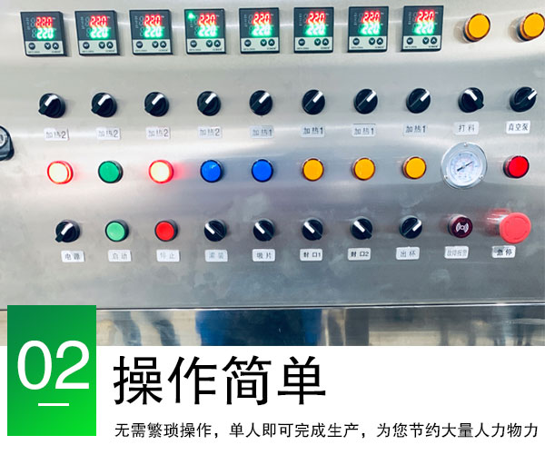 4.全自動封杯機采用韓國光眼裝置,臺灣PLC觸摸屏,變頻器及法國電氣元件