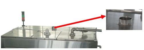 9、整機采用優質SUS304太鋼不銹鋼,防腐效果好。外包不銹鋼和鋼化玻璃門罩將機體密封,在灌裝頭上方預留排風口(接管孔徑為直徑Φ100)可與工廠的引風系統相連,將灌裝過程產生的廢氣排出。